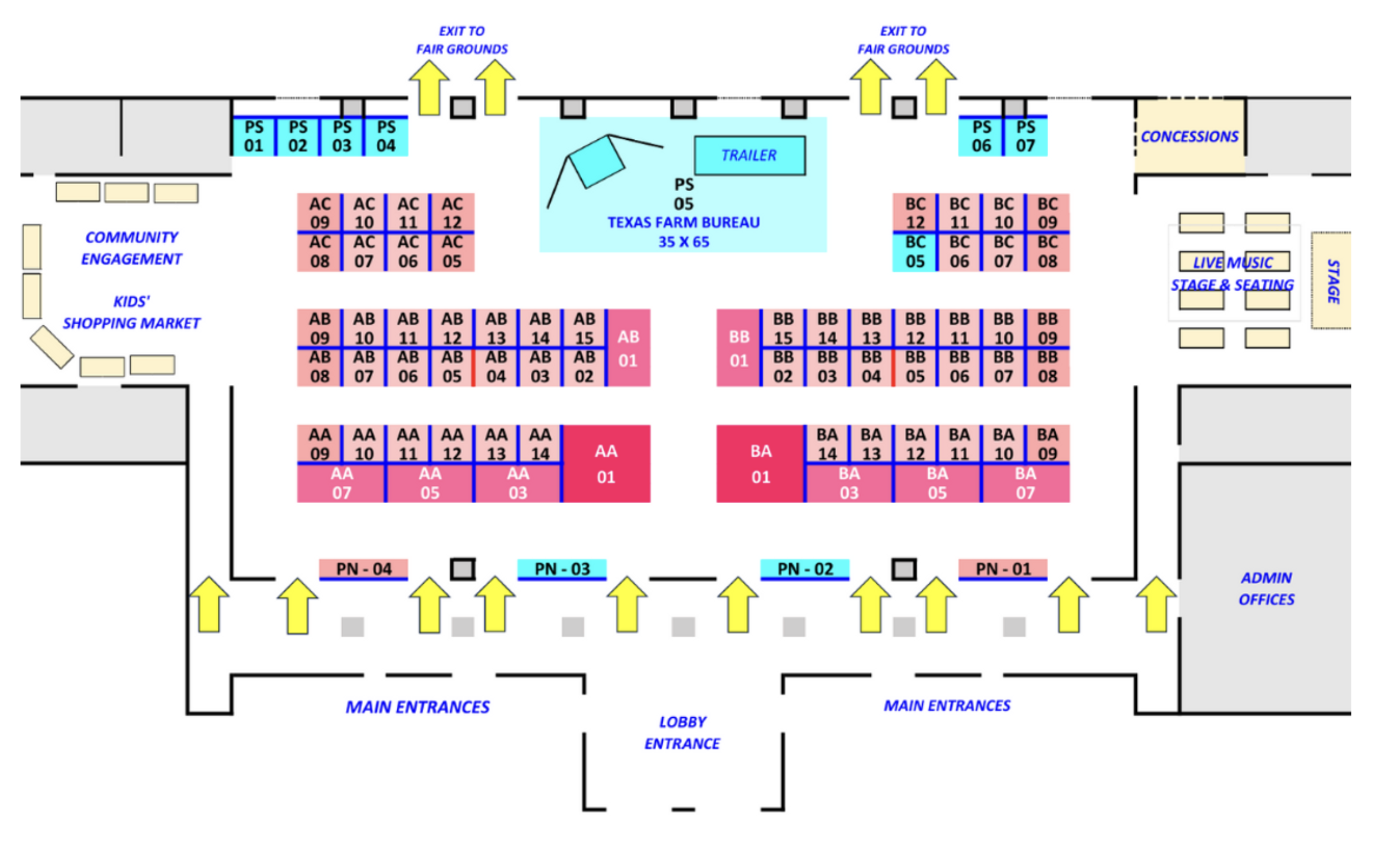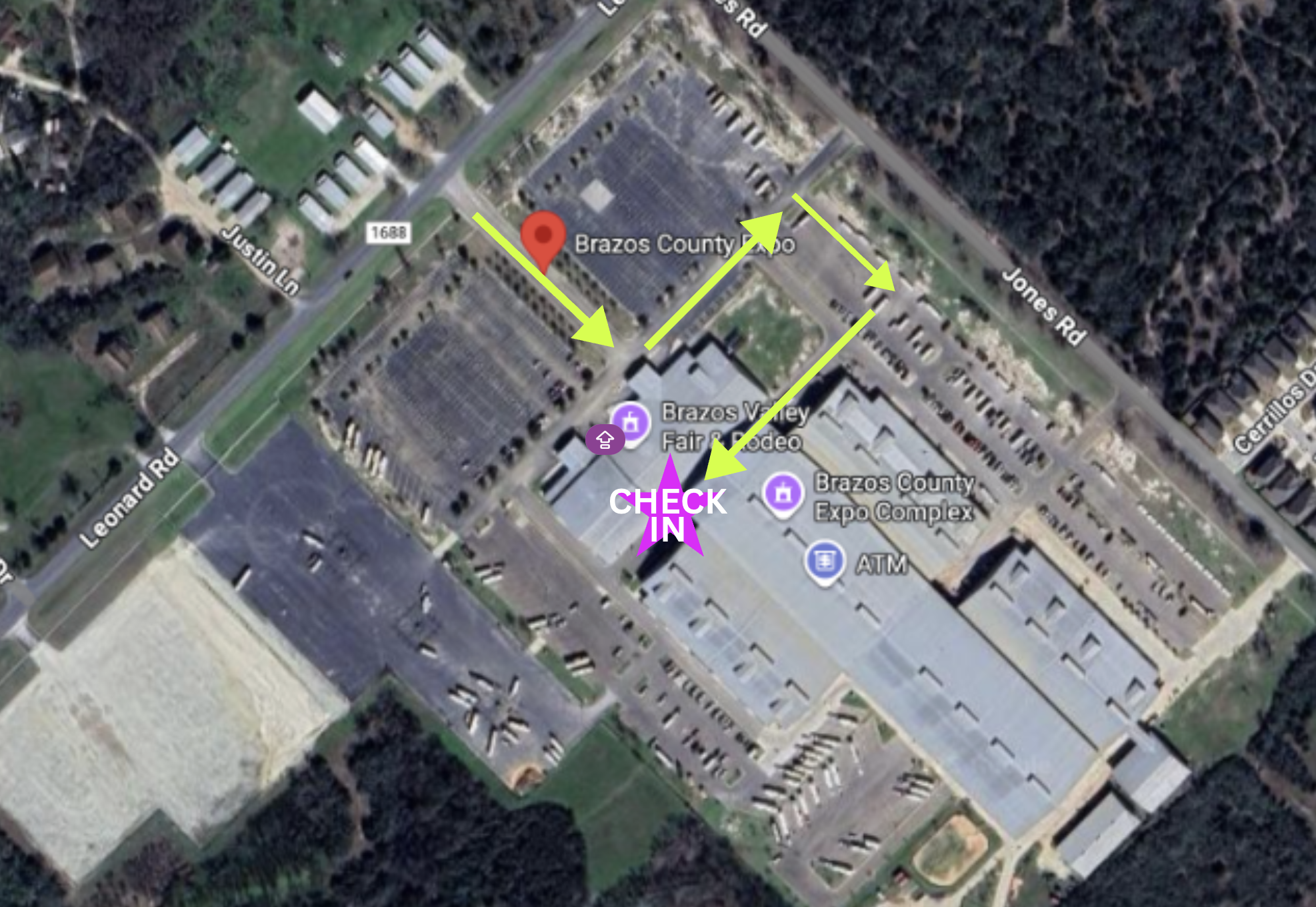 See the map below for instructions on where to arrive. DO NOT UNLOAD FROM THE FRONT OF THE BUILDING you will need to enter the Expo Hall from the back as shown in the below map.